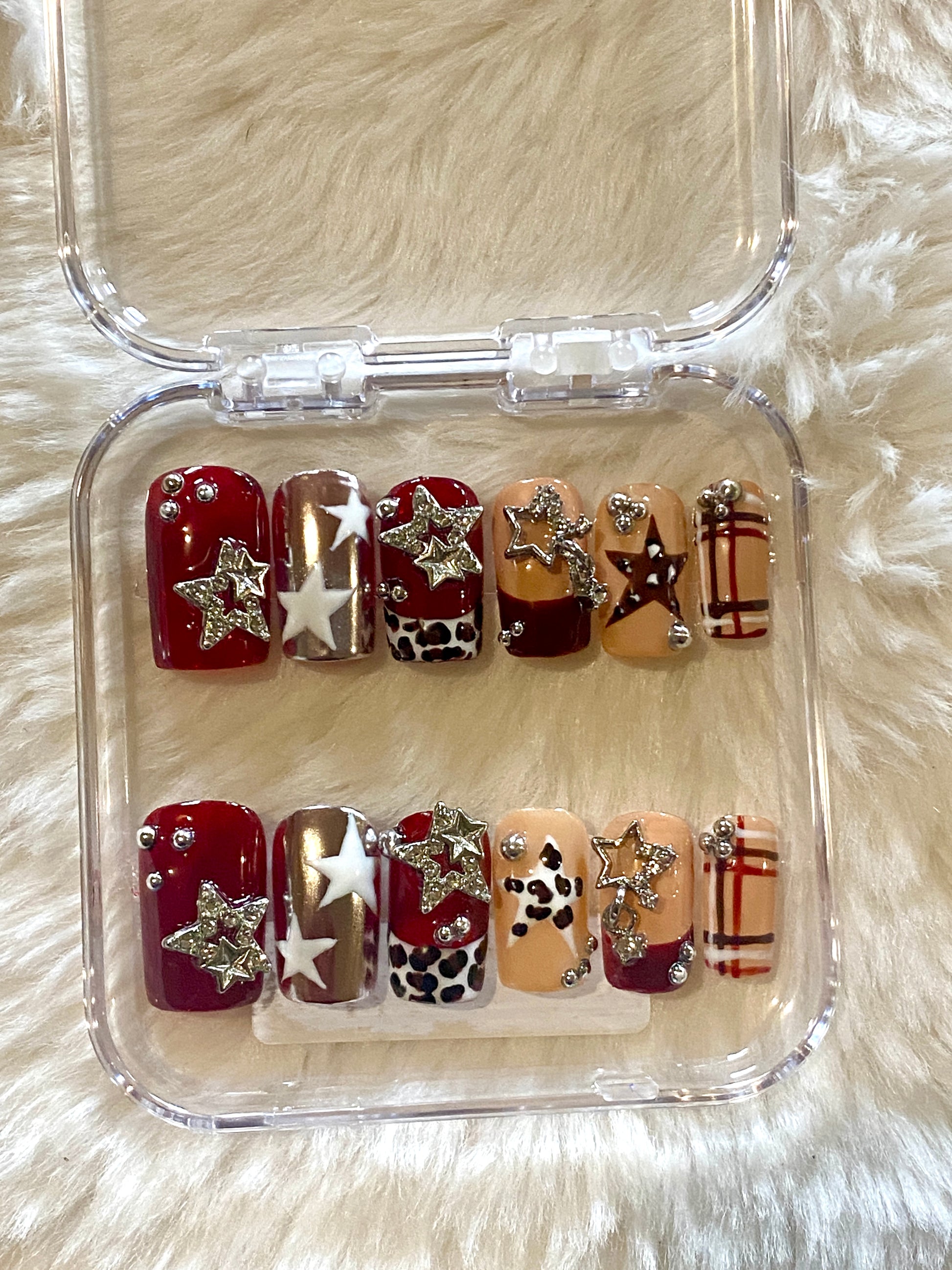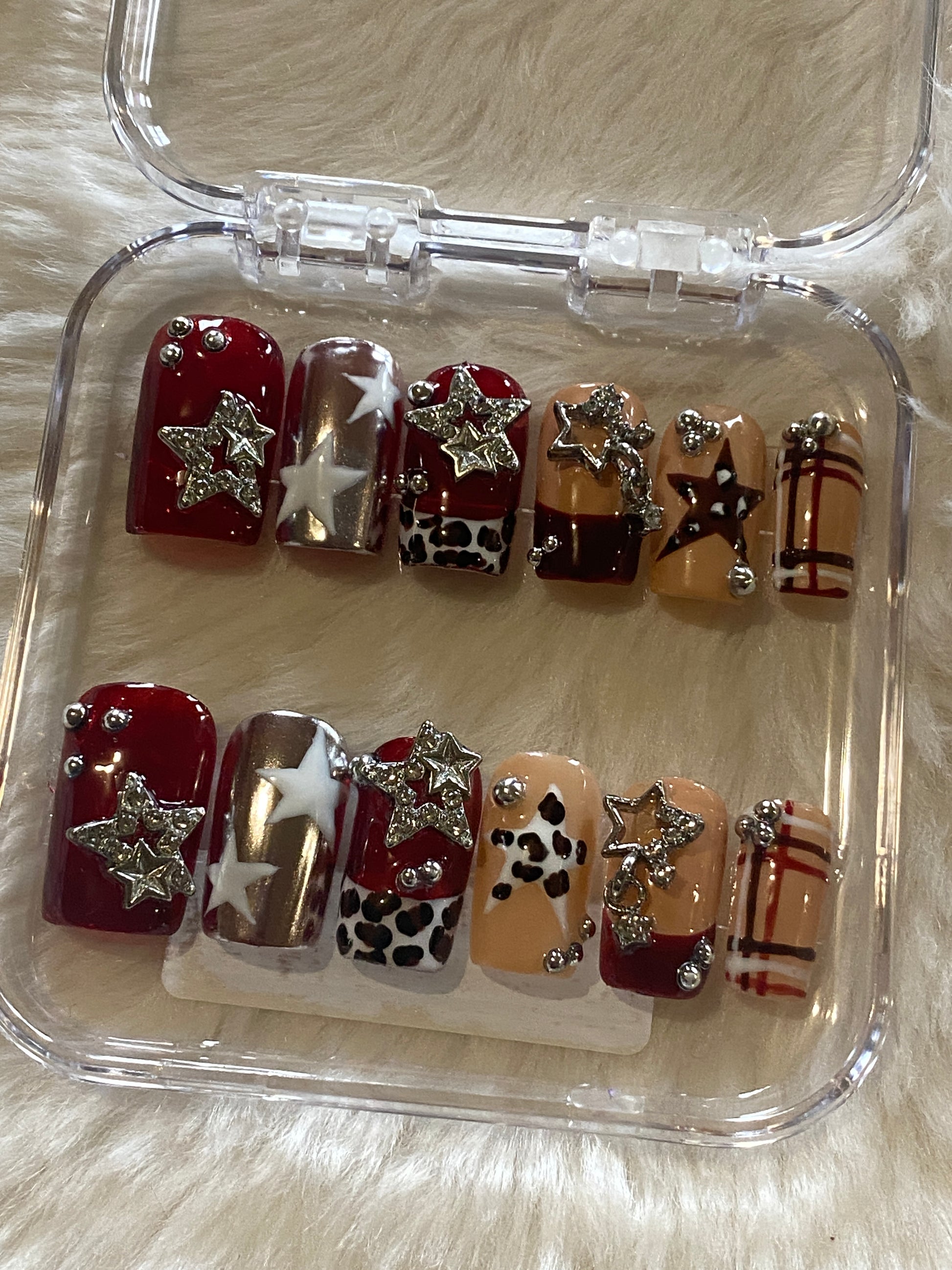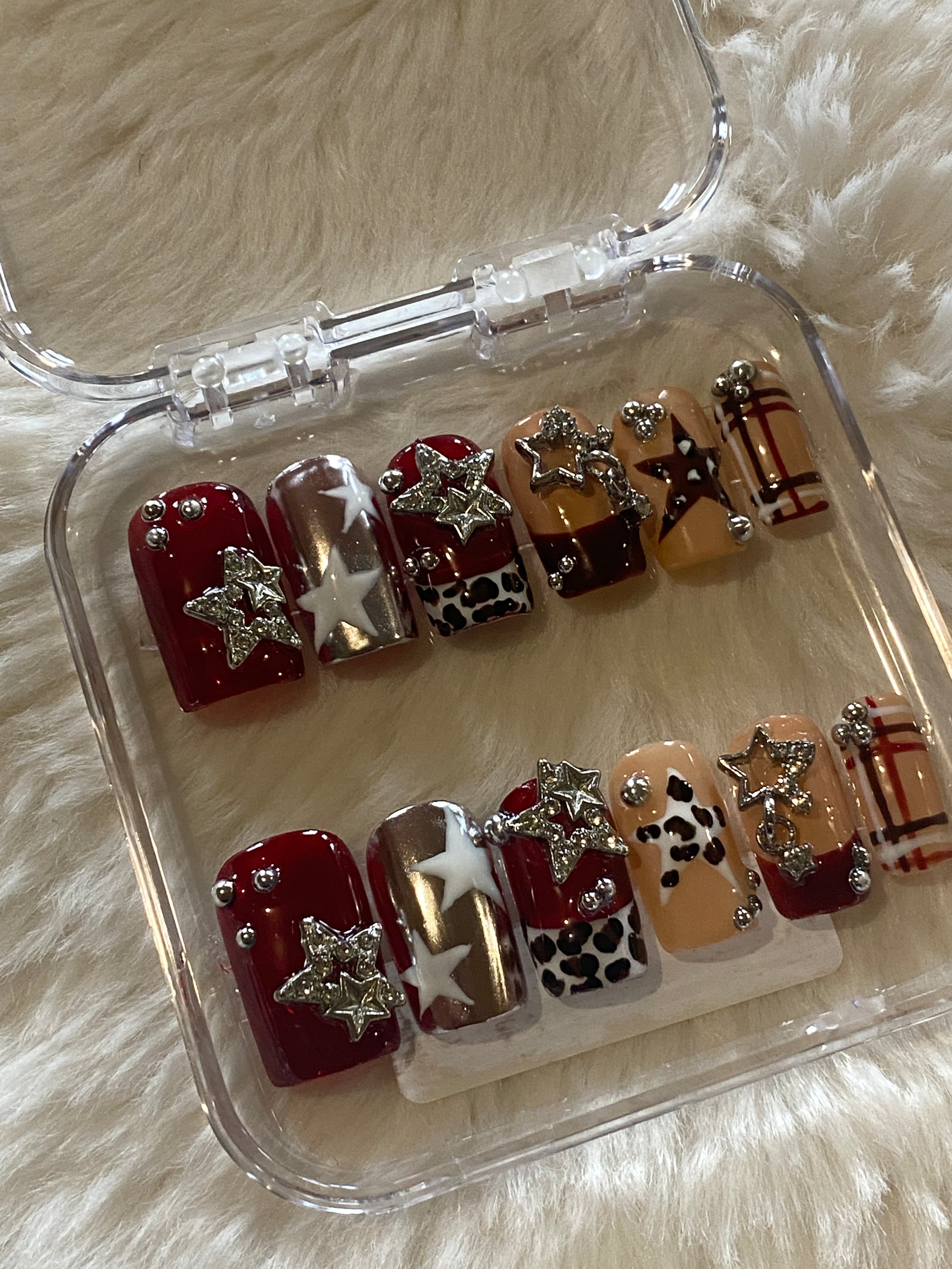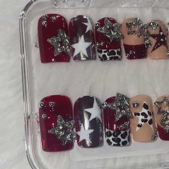 Rodeo star inspired set with painted cow print, stars and silver charms